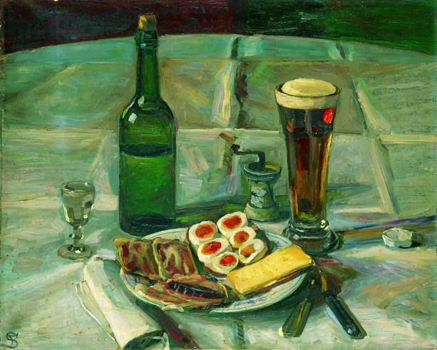 Johannes V. Jensen skrev et pragtfuldt digt - jeg mener at kunne huske at det var ham - om frokosten. Når man læser digtet kan man ligefrem smage maden, øllen og brændevinen. Syberg lavede et maleri direkte inspireret af Jensen's digt. Pragtfuldt.