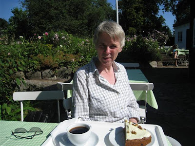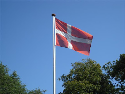 Og får man noget mere dansk end Dannebrog på baggrund af blå himmel og grønne træer ? Og mere dansk kan det vel heller ikke være, at få en kaffe-tår og et stykke hjemme-lavet kage. Altsammen i Johannes Larsens Museet's have.