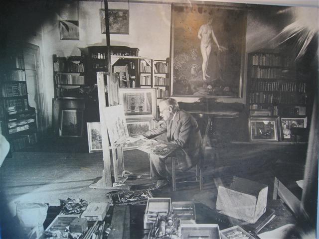 ....for at lave en sammenligning med en fotostat, der sidder ved indgangen til Johannes Larsens atelier og hvorpå mesteren himself sidder og maler.