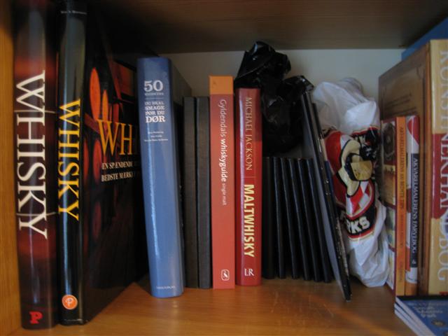 Per T.: Whisky-flaske i plastic-posen ? Næh, nej - de står skam frit fremme....d.v.s. at lige nu har jeg en Linkwood 11 år cask strength 55,8 %, en Bowmore 15 år 43 %, en Dalwhinnie 15 år 43 % og en Glenfarclas 15 år (Doublematured) 46% stående på min bakke her i stuen. Sidstnævnte Glenfarclas er min yndlingswhisky. Doublematured hvilket betyder lagring i 13 år i egetræs-fade (brugt en gang i US til lagring af amerikansk whsky) og så 2 års lagring i et brugt sherry fad, ialt 15 år. Denne lagringsmetode giver - synes jeg - en dejlig rund whisky med en aroma af sødme hvor især en lille antydning af sherry/portvin anes. Denne lagring giver også en flot, flot farve.