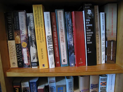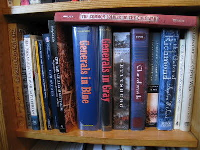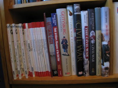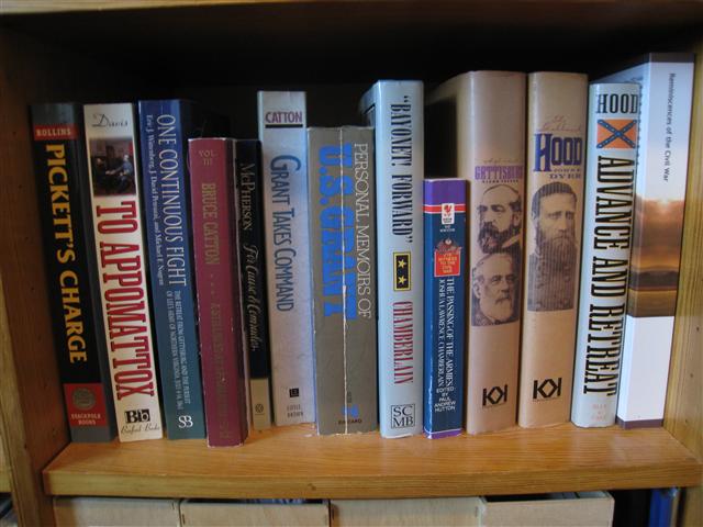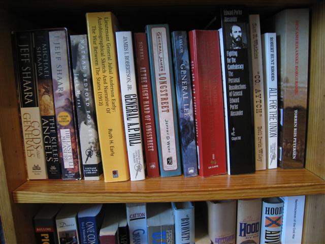 De næste bøger er om den amerikanske borgerkrig. de er alle på amerikansk, mange af dem endda på amerikansk som det blev skrevet i perioden 1866 - 1910. Få er fundet herhjemme i antikvariater; resten er købt via Amazon eller medtaget fra rejser overthere.