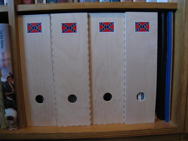 Bog-kassetterne herunder indholder landkort, hefter og brochurer om den amerikanske borgerkrig.