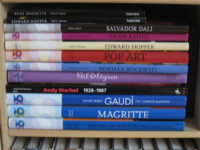 En del af mine bøger om kunst, især om Guldalderen og om Johannes Larsen, er købt antikvariske, men ellers er de allesammen nye.
