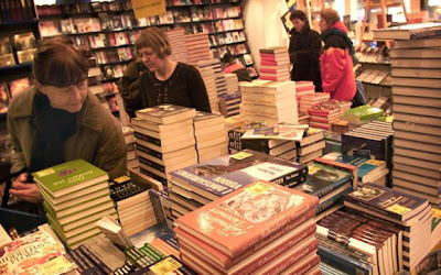 Men altså - udsalget her i Sognet hos "Bog & Ide" startede imorges kl. 07,00 og for en gangs skyld var jeg tidligt på færde. Jeg var der ca. 07,30 og der viste sig at være god plads; kun 4-5-6 andre end jeg havde fået ideen til også at være der inden man skulle på arbejde.