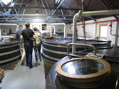 Herunder ses de 2 kar typer kaldet "Mash tun" og "Wash tun" og de er enorme og går flere meter under gulvhøjde.