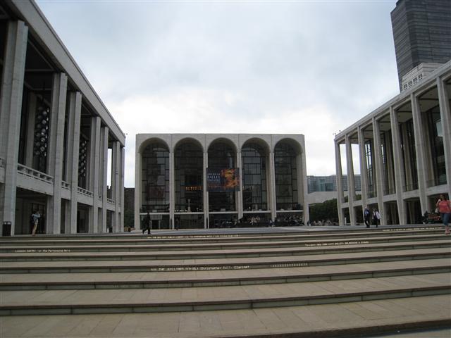 Lincoln Center, som ses herunder, består af 3 store haller/sale/bygninger. Til venstre ses J.P.Koch's Hall hvor New York City Ballet har hjemme. I midten ses Metropolitan, hvor Operaen og American Ballet Company har hjemme og bygningen til højre er koncertsalen hvor New York Philarmonica (Symfoni-orkesteret) har hjemme.