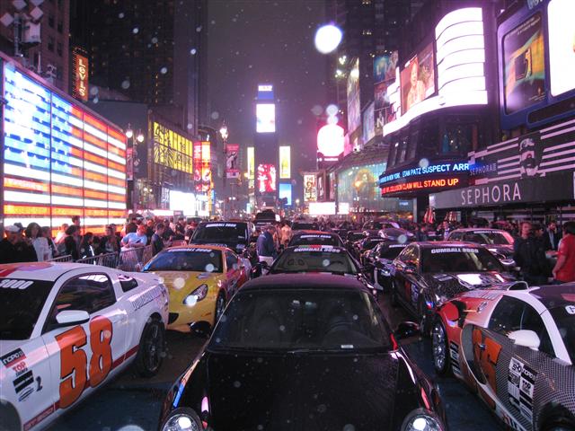 En aften vi passerede Times Square var alle disse et. De skulle næste morgen starte i et billøb der hedder Gumball 3000 og som går fra New York til vistnok Los Angeles. Der var alle mulige sportsvogne og masser af mennesker. Vi så dem også næste morgen da de skulle starte.