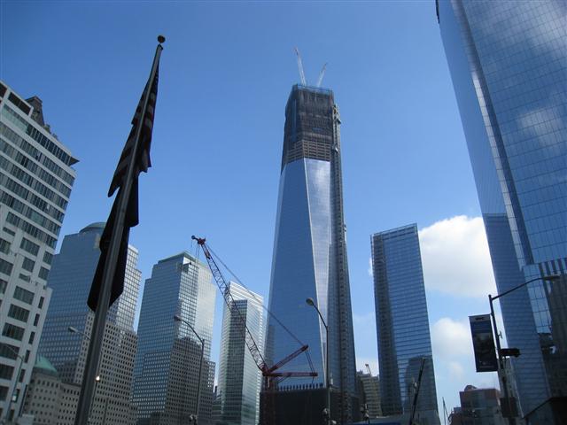 Herover ses Empire State Building - den opleves bedst på afstand. Nedenfor er det nye World Trade Center. Her ville vi have set mindesmærket fra 11/9-katastrofen men det fravalgte vi, da man skal have indgangsbillet og guide på. Guiderne er efterladte fra ofrene som fortæller meget personlige historie og det havde vi hverken lyst eller tid til at høre på.