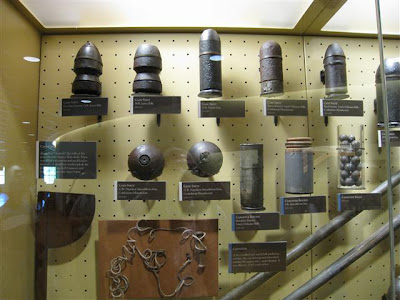 Billedet ovenover og nedenunder er fra Visitor Centret og viser eksempler på de granatyper der blev anvendt under slaget. De viste ting er alle fundet fra slaget.