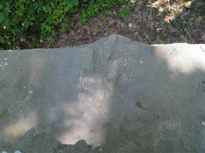 Et andet sted kan man på en bro over en mindre å på en af murenes topsten se det forstenede fod-aftryk efter en Dinosaur. Faktiskt er der 2 sten med aftryk, men kun nedenstående er godt nok til foto.