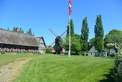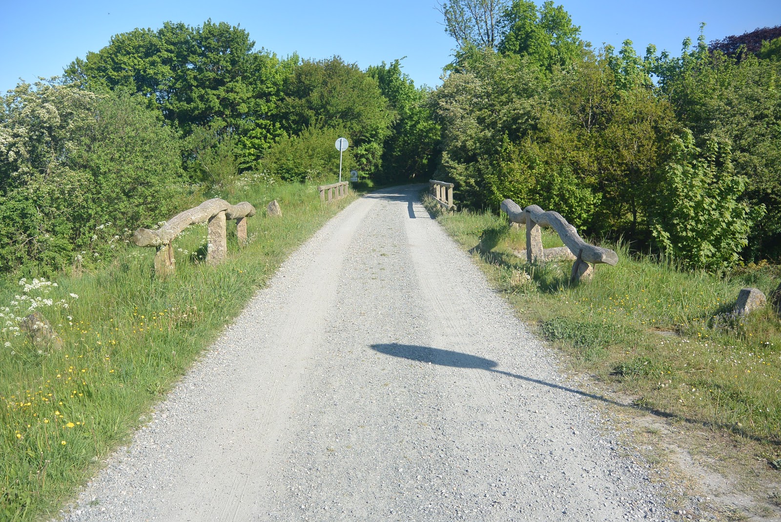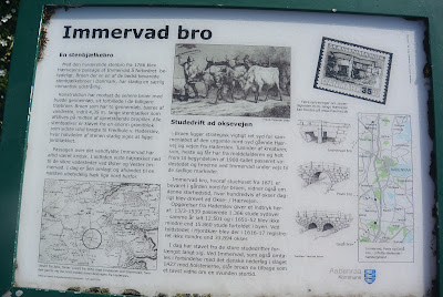 Der var 2 museer i Haderslev, som jeg havde sat næsen op efter at se, nemlig "Arkæologi Haderslev" som udover arkæologi fra området og noget lokalhistorie også indholdt et lille Frilandsmuseum, samt "Den Slesvigske Vognsamling" som er om gamle hestevogne. Det er nu sådan, at alle museerne i Haderslev først åbner kl. 13,00 så der er "noget tid at slå ihjel" inden åbningstid.  Fra vort ophold i Flensborg i den første weekend af December sidste år, vidste jeg at Immervad Bro og Hærulf-stenen ligger i nærheden, så dem ville jeg lige gen-se. Igen var vejret varmt og næsten for varmt efter min mening. Strålende sol og vindstille denne Fredag. Jeg var der ved 09,30-tiden og blev igen glad for gensynet.