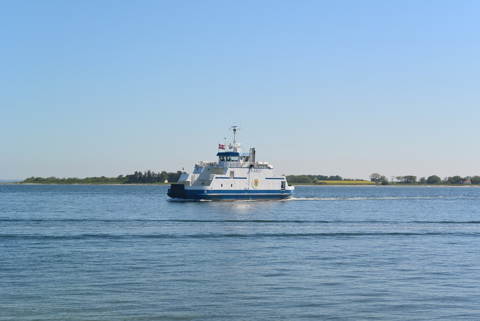 Herunder ses ankomsten til Aarø og herunder fra Aarø mod Aarøsund og fastlandet.
