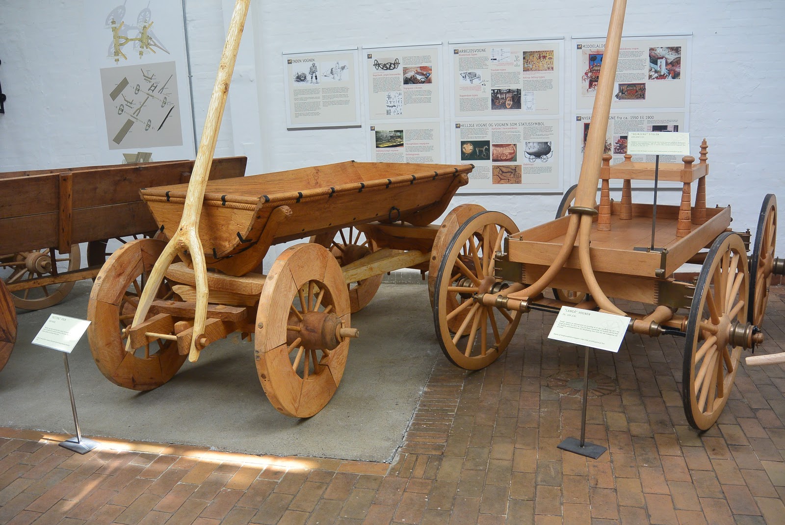 I et andet af de første rum, så var der - af Haderslev Museum lavet - et par rekonstruktioner af rigtig gamle hestevogne, hvoraf nogen af dem var fundet som gravgaver....i hvertfald fundet i grave og eller offermoser. De 2 nedenfor er rekonstruktioner af over 3.000 år gamle vogne fundet herhjemme.