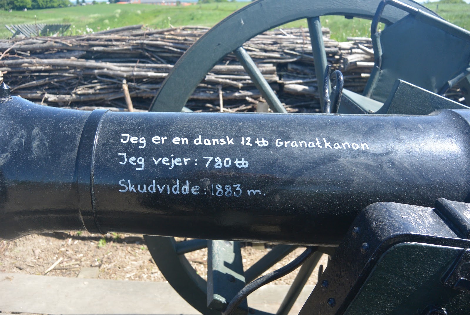 Af dagsprogrammet fremgik, at der var demonstration af 1864-krigens geværer kl. 10,45 og demonstration af kanon og kugler/granater kl. 11,30, så jeg havde tid nok til at se de 2 standardfilm der vises om slaget ved Dybbøl og om krigen som helhed og til at gå rundt og se på både den indendørs og den udendørs udstilling.