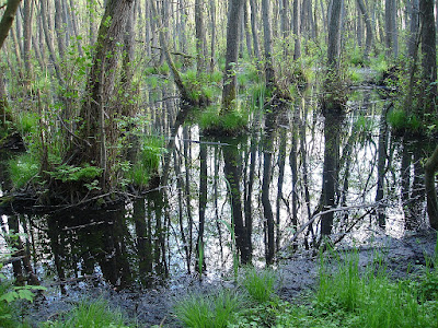 Når man går langs stierne her i dette område er der ret sumpet. Egentlig mener jeg, at der burde være Lille Flagspætte nogen steder, men jeg har aldrig set nogen eller hørt om nogen, der har set den.