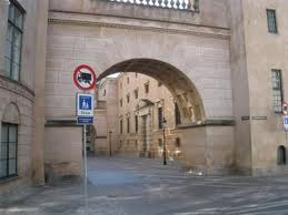 Bagefter gik vi så ad Læderstræde og Snarestræde, Naboløs, Magstræde (disse stræder(gader er Københavns ældste med Københavns ældste hus liggende i Magstræde nr. 17-19 og henover det lille Torv Vandkunsten, hen ad Gåsegade og op ad Farvergade og ind og se gården i Vartorv, som var det sted N.F.S.Grundtvig residerede og prædikede sine tanker og ideeer fra. Et herligt sted. Stadig Kirke men der ligger også en masse Grundtvig-halløj der ligesom Søren Kirkegaard Centret også ligger der. Nåh - tilbage til Gåsegade, om ad Hestmøllestræde og så hen til Slutterigade, som er gaden mellem Københavns Domhus (Byret) og det gamle fængsel. Herunder ses Domhuset på Gammel Torv. Det er lige til venstre at Slutterigade er.