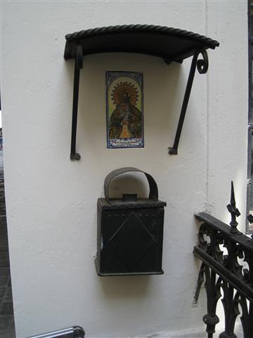 Der er en del helgenbilleder hist og pist og herunder er tillige en gammel overdækket kollekt-bøsse ved sådan et billede: