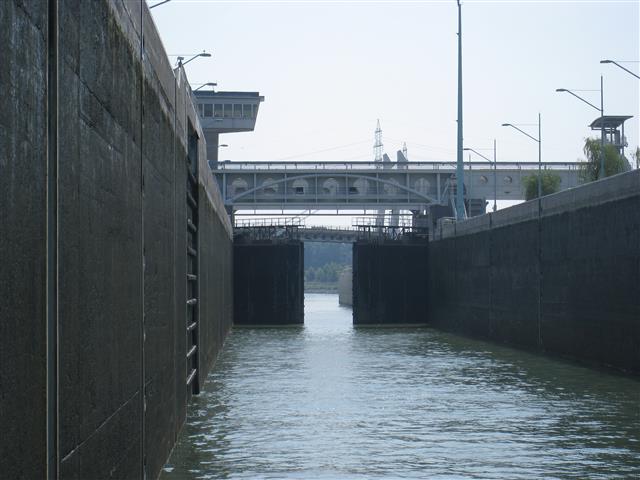 En dag tog vi på sejltur på Donau: rundt om Prater-øen. Turen tog 3½ time og vi kom bl.a. igennem 2 sluser.