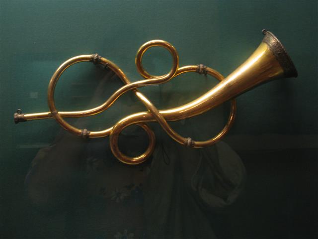 Herunder et horn/trompet som kunne frembringe meget høje toner. Da det efterhånden som udviklingen tog til ville være blevet for langt og uhåndterligt valgte man at sno hornet istedet for at have de langt og lige. Utroligt, ik' ?