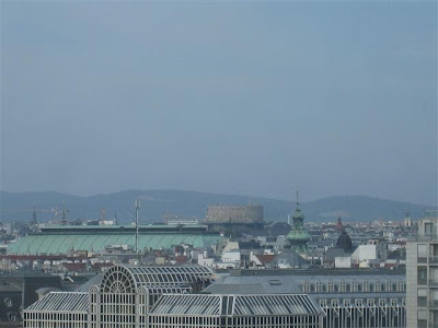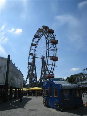 Og vi var selvfølgelig også i "Prater" som er en østrigsk form for Dyrehavs-bakke. Her prøvede vi som det eneste, det rigtigt gamle Pariser-hjul, hvor man sidder/står i en form for kupeer/små jernbanevogne. Man havde en fed udsigt derfra og det kørte rigtigt langsomt rundt.