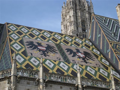 Lillemor og jeg har lige været på ferie. 11 dage i Wien og det var vort første besøg. Vi boede på Hilton Vienna Stadtmitte og havde kun 2 min. til U-Bahn og knap 15 min. til centrum aka Stephans-Platz med den store Domkirke Stephans-Dom. Noget af taget af kirken ses herunder.