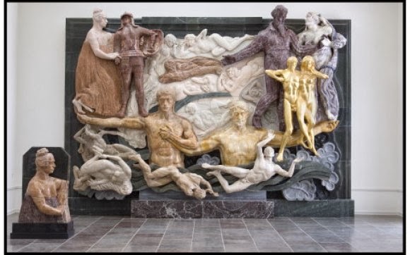 Med hensyn til billedhuggeriet, er der denne skulptur - en hel væg på hele 620 cm x 400 cm og lavet i forskellige sten- /marmor arter og metal. Også den her vist yder ingen retfærdighed. Et genialt mesterstykke synes jeg.