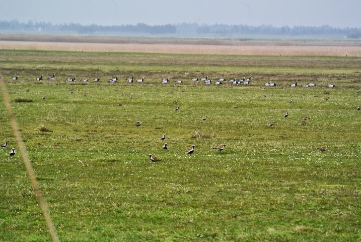 Der var en del Bramgæs på markerne deroppe og også en del Grågæs. Ingen Kortnæbbede så vidt jeg kunne se. Og Viberne tumlede sig rundt i luften overalt. Ved Jens Thomsens's hytte var der fuldstændigt fugletomt.