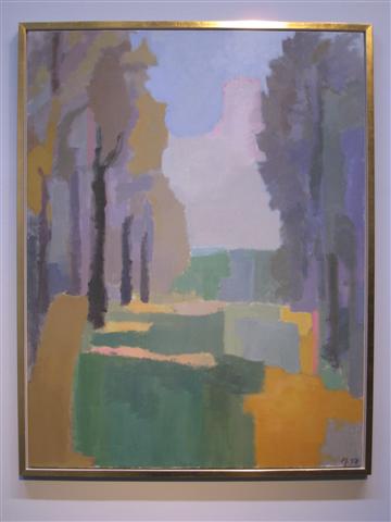 Og så går udstillingen ellers slag i slag der ud af. Og helt ærligt; jeg synes sgu' hun er dygtig. Jeg synes hun bruger farverne på malerierne rigtigt godt og hun er ikke bange for at lave lidt spræl med motiverne. Det nedenfor er f.eks. fra Fredensborg Slotspark, hvor man ser ned ad en af Alle'erne. Det er fanget rigtig godt.