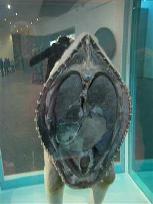 Arken er jo mest til moderne ting. Der er et par Olauf Eliasson installationer der. Kun 2 af dem var noget værd....igen min mening. Og så har Arken jo fået en kunstgave bestående af en stribe værker af Damien Hurst. Et af dem er 2 halve køer. Går man imellem dem, så kan man se deres konserverede indvolde. Ret spøjst synes jeg.