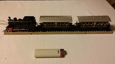 Min bror har en bred "jernbane-nørde" omgangskreds og der i blandt også en, der har sin egen forretning med alt muligt jernbane- og tog-halløj, og sidst han var ude hos ham (vistnok i Hellerup ?) havde han opdaget, dette gamle begynder-sæt, så det MÅTTE han have......til mig.
