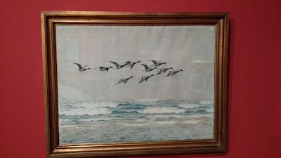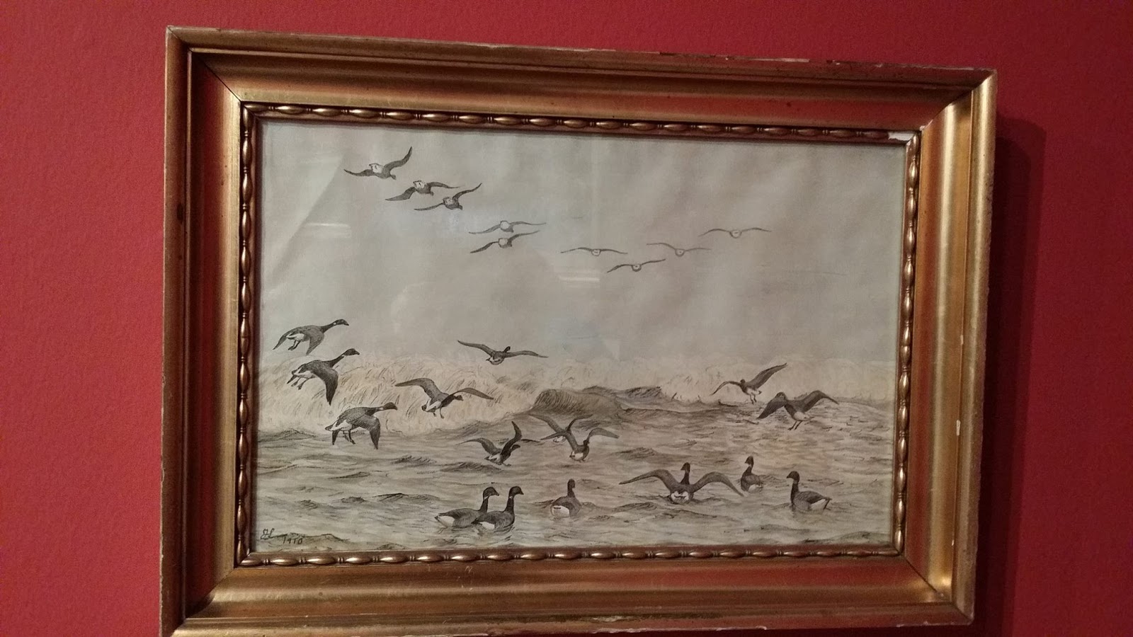 Det nedenfor viste hedder "Hedelandskab med trækkende Sædgæs, Filsø, 1925". Det har jeg altid været begejstret for:
