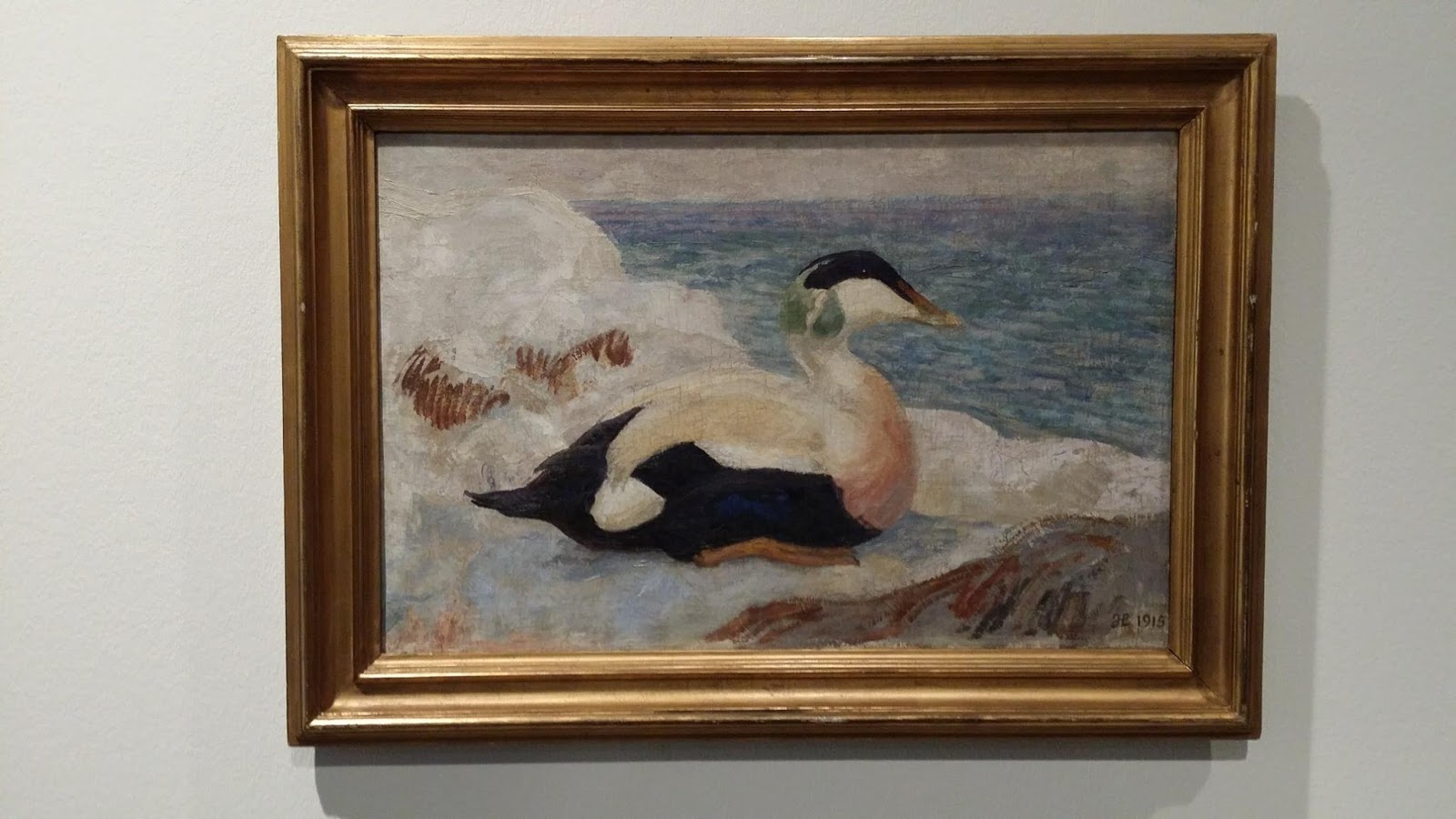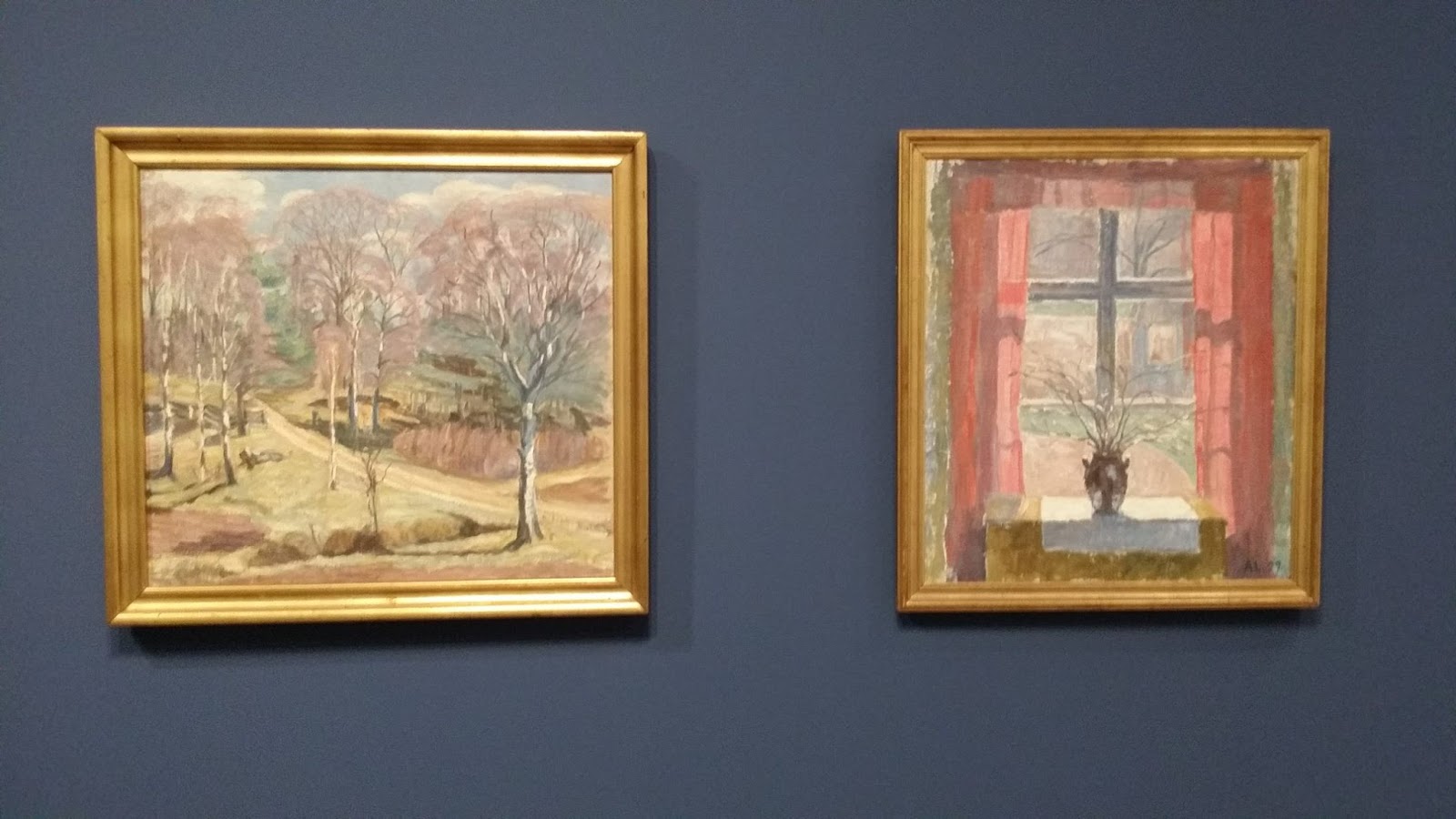 Jeg skal være ærlig at tilstå, at jeg gik lidt hurtigt gennem Alhed Larsen's malerier. Hun er bestemt god - især nogen (få) af dem er rigtig gode. Man kan godt mærke at hun havde andre vilkår at male under end en mand - og især hendes mand, som dels var meget produktiv og dels tjente rigtig mange penge. Der er langt imellem malerierne tidsmæssigt; det kommer sådan i bølger og det skyldes jo helt klart kønsrollemønstret der var dengang. Nu døde hun jo allerede som 55 årig efter en del år sygdom. Hvem ved hvad hun havde drevet det til, dels hvis omstændighederne havde været andre og hun havde levet længere.