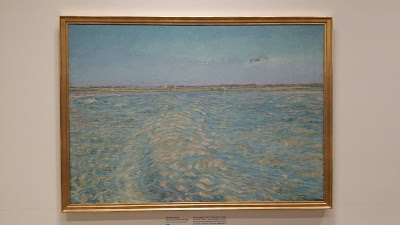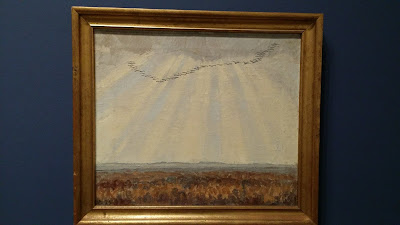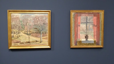 I dag var jeg en af de første på Ordrupgaard og kunne stort set gå uforstyrret og alene hele udstillingen igennem. Dog - i udstillingens anden halvdel (Ordrupgaards ny udstillingsbygning er ligesom delt i en del 1 og en del 2 adskilt af indgangspartiet i midten - blev jeg "indhentet" af en lærer og hans 7.klasse og det bragte.....skal vi sige en vis uro og snakken/mumlen......men det var alligevel dejligt at se de unge mennesker virke interesseret i de udstillede malerier m.m. De havde, som jeg opfattede noget af lærerens tale, åbenbart arbejdet med maleri i al almindelighed og denne udstilling i særdeleshed inden de kom her. Herligt.