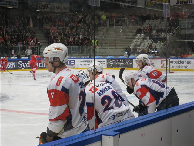 Herunder ses han i kamp mod Sverige. Han spillede sin allersidste ishockeykamp på Top-niveau netop mod Sverige under VM i Stockholm her i foråret. Som han siger nu: "Det er ikke alle beskåret at spille afskedskamp mod Sverige i en udsolgt Globen Arena (14.000 tilskuere)."