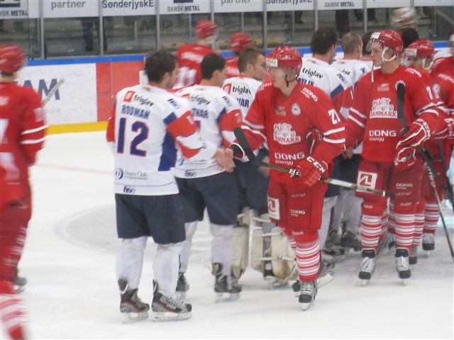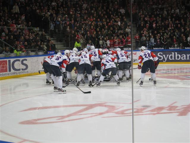 Herover er han kommet i gode hænder ...eller hvad det nu er....mellem et par tjekkiske spillere under et VM. Og nedenunder er det fra en kamp mod Letland: