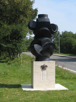 De 2 fotos nedenfor, forestiller den skulptur, som han har lavet foræret sin kone - Dronningen - i fødselsdagsgave. Man må sige at han, Prins Henrik - og manden på skulturen - har et sikkert og godt fast tag i/om det :-D