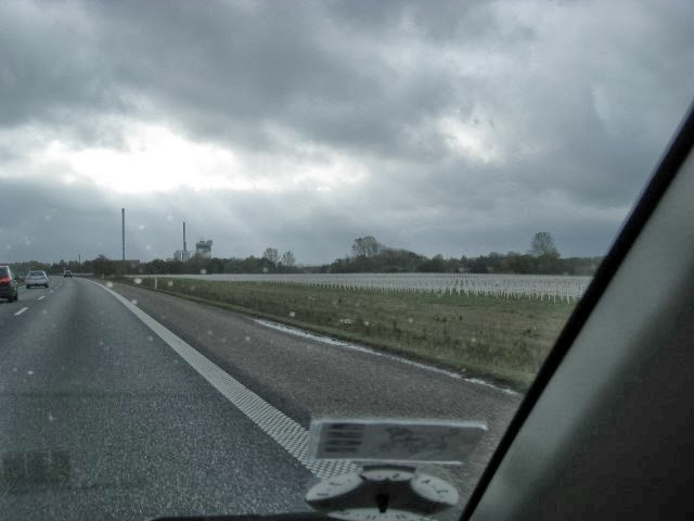 Og så - lige før Hedensted på vej nordpå (fotoet her er taget på vejen hjem, altså sydpå lige efter Hedensted) - så opdagede vi en mark med 10-tusindvis hvide kors. Det viste foto er det eneste der blev til noget...desværre.