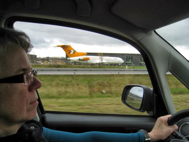 Herunder ses et fly vi lige pludselig opdagede holde ved noget kontor eller fabriksbygninger langs motorvejen: