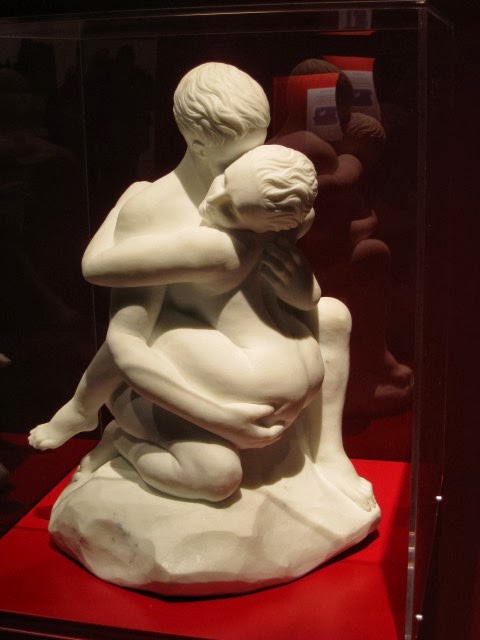Og det med det erotiske fortsætter med en ca. 80 cm høj hvid marmorskulptur. Man kan sige, at manden i det par virkelig har "et godt greb om tingene". Man kan se hvordan hans fingre nærmest borer sig ind i kvindens baller :-) . Jeg har set et foto af en legemsstor version i bronze af denne skulptur. Skulpturen forærede han Dronningen i gave for et par siden og den skulle stå i parken ved Marselisborg Slot.