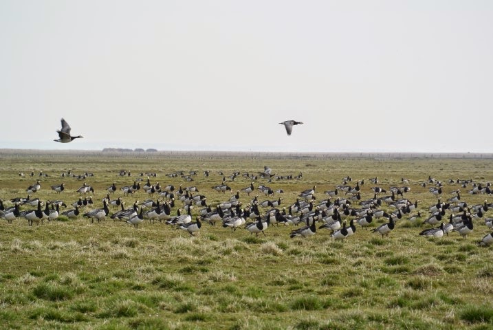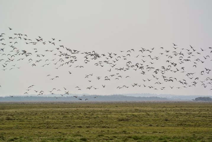 Efter en god halvtimes tid i Rørskoven gik jeg tilbage til Vestårnet, hvor ægteparret, jeg havde mødt ved Østtårnet, nu var ankommet. Vi faldt i rigtig god snak om fugle. Konen var en rigtig habil fuglekigger, mens manden.....eller rettere som jeg fandt ud af...hendes kæreste, var rimelig ny. Han fik set sine Skægmejser. Derudover så vi endnu en flyvende Rørdrum, en Rørhøg han, 2 Spurvehøge, Rørspurve, masser af Grågæs og Toppede Lappedykkere og den lille flok Fjordterner jeg tidligere havde set. Snakken gik lystigt og var smadder hyggelig.