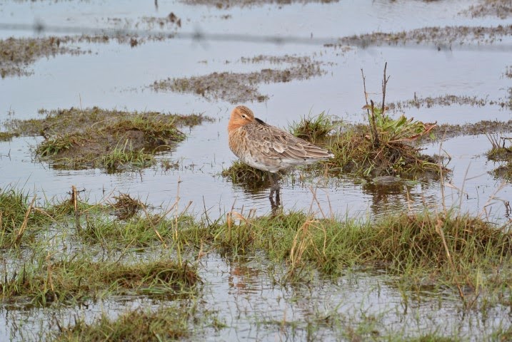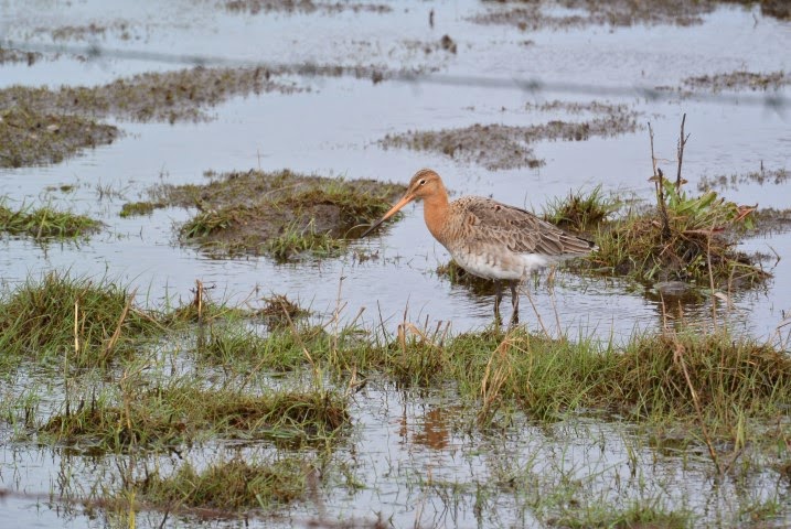 Jeg blev stående i Øst-tårnet en vel 20-25 minutters tid til mens jeg kiggede efter fugle og også fik spist et par medbragte croissanter. Vejret var jo ikke ligefrem fremragende; gråt og overskyet og meget få regndråber var faldet. Hmmm....at gå de 2 km hen til Vesttårnet og risikere at blive fanget af en regnbyge tiltalte mig ikke, så jeg besluttede at køre derhen. På vej tilbage til bilen mødte jeg et ægtepar, der var på vej til Østtårnet jeg lige havde forladt. Jeg fortalte om Kærsangeren, Rørdrummen og hvad jeg ellers havde observeret. Manden var forhippet på at se Skægmejser, hvortil jeg svarede at chancen var størst henne ved Vest-tårnet.