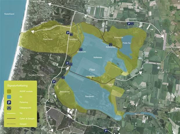 Herunder et kort fra Fugleværnsfonden. Husk at trykke på billederne/kortene for at dem i større størrelse. Helt til højre ved Østrup ses P-pladsen og Øst-tårnet. Midtvejs på kortet ses Vest-tårnet. Man kan gå fra Øst- til Vesttårnet dels på sti og dels på den her træ-plankesti.