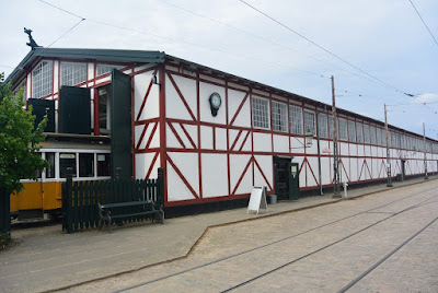 Noget af det første jeg bemærkede var den gamle Valby Remise, som ses herunder. Da den i sin tid var færdig som remise og skulle rives ned, blev den købt af en lokal Herlev-matador Vilhelm Bang, som fik den revet nænsomt ned og flyttet ud og genopført i Herlev på Marielundvej og anvendt som Bangs Tømmergaard. I 1994 blev den købt af Sporvognsmuseet og flyttet til Skjoldenæsholm og genopført og indviet i 1995. Jeg kan huske den fra Herlev-tiden, hvor det var man handlede ting og sager, som man i dag gør i Silvan, XL-byg og hvad det nu hedder alt sammen. Jeg kan huske dengang, at jeg - når jeg var der - beundrede bygningen og undrede mig over byggestilen uden at vide at det havde været en sporvognsremise.