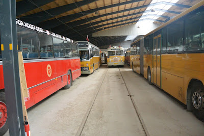 Sporvognsmuseet har sandelig også en hel del busser. Der er nogen få, der er køreklar men der er sandelig mange, der kræver en kærlig hånd - det gælder i øvrigt også for mange sporvogne. Der er en kæmpestor remisebygning, der er fyldt med disse gamle klenodier.....eller vrag om man vil...som jeg tænkte. Det virker uoverskueligt med de mange sporvogne og busser der står der, som det åbenbart er meningen at sætte i stand. Som en af de ansatte sagde, så er problemet, at det er "lutter gamle mænd" der er der og når de dør, så forsvinder en masse viden og erfaring.