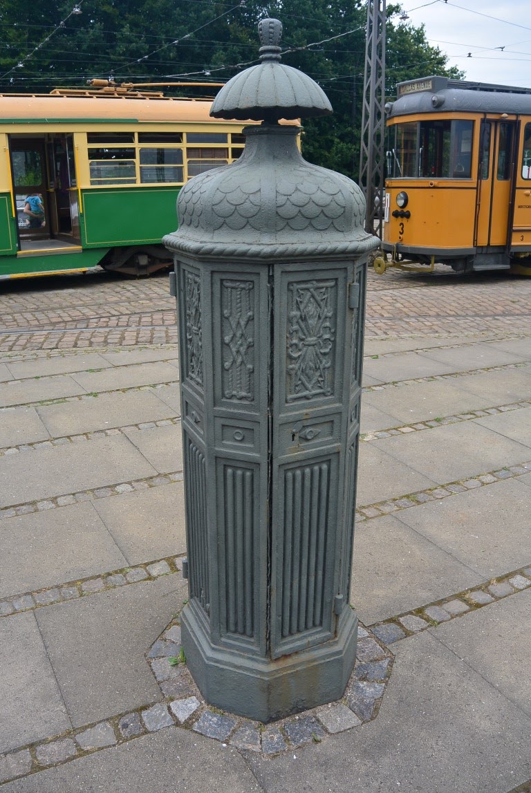 Hvad der også er sjovt ved sporvognsmuseet er, at der er mange gamle ting fra by-billedet. Mange ting som jeg kan huske fra barn- og ungdom i "Kongens Kjøbenhavn". Herunder en af de gamle rigtige telefonbokse med en reklamesøjle bag ved.
