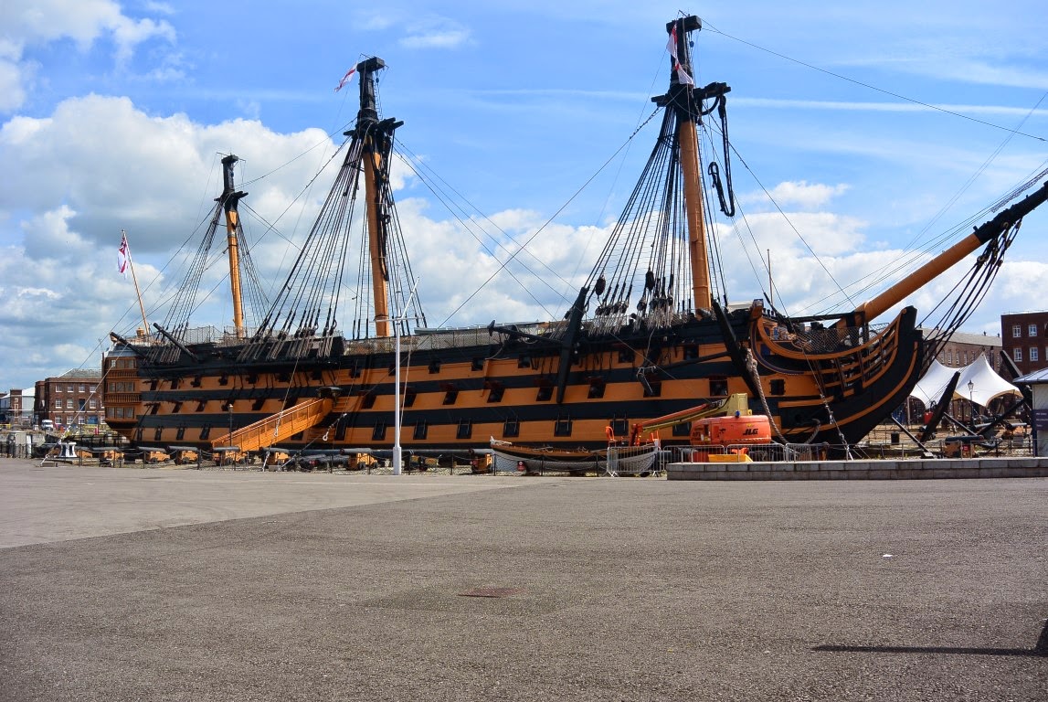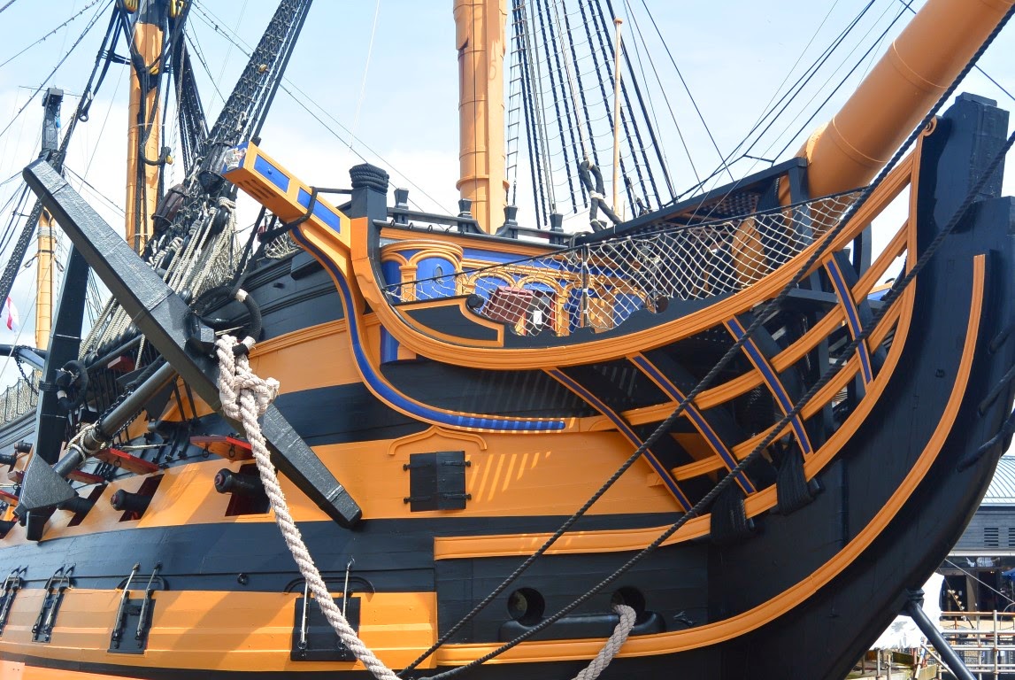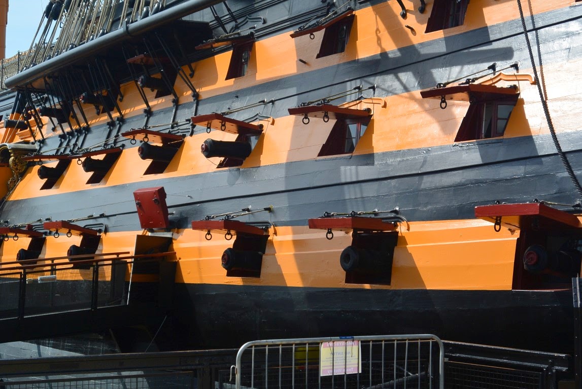 Jeg havde glædet mig som et lille barn til at opleve og se Lord Horatio Nelson's flagskib HMS Victory fra slaget ved Trafalgar d. 21. Oktober 1805 og hvor Lord Nelson blev dræbt. Det viste sig - desværre - at man havde taget skibets maste-toppe og rigning af på grund af renovering. Ærgerligt, men skibet var der og ombord kom vi og jeg tog en hulens masse billeder der.....som I dog skal forskånes for :-) . Det er utroligt at forestille sig, at der har været en besætning på 854 mand på det træ-skib der. De almindelige sømænd og marinesoldaterne sov i hængekøjer på de 3 dæk og der var bare en breddeplads på ca. 35 cm til rådighed for hver mand i deres hængekøjer.