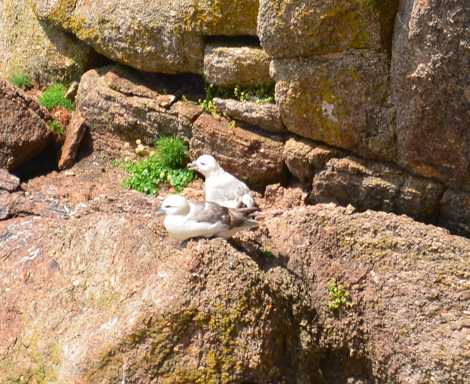 Vi gik så rundt i området og der er flot. På klipperne herunder ses hvide plamager. Det er fuglkidt - Guano - fra de rastende/ynglende fugle:
