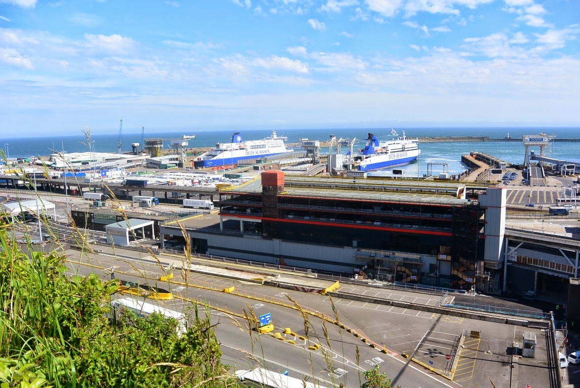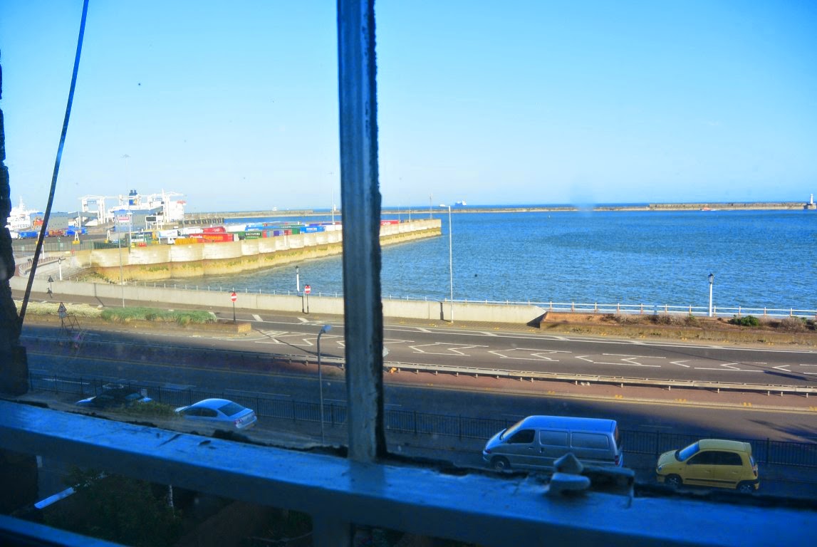 Herunder udsigten fra vores vindue ud over havnen. Fra vinduet kunne vi faktisk se den franske kyst ved Calais på den anden side af Kanalen.