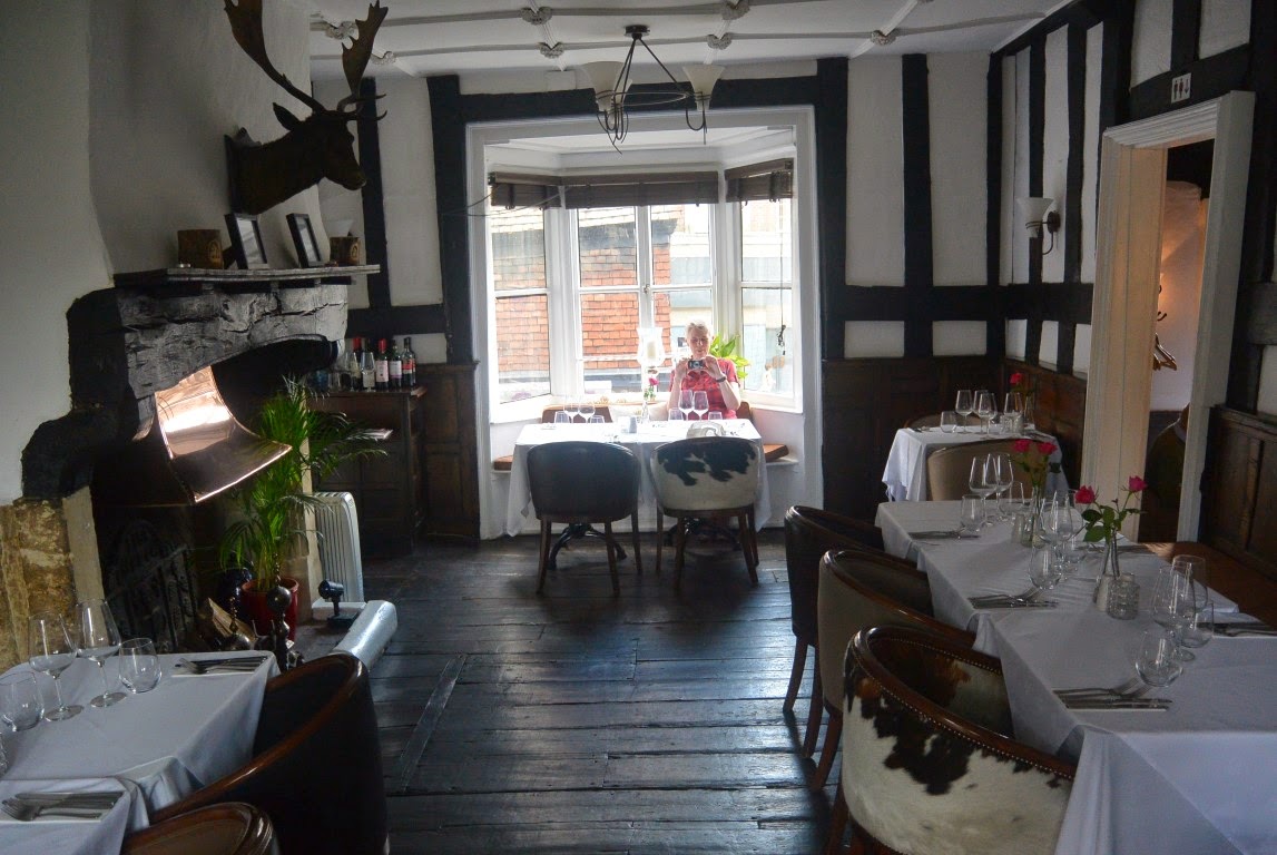 Herfra gik vi tilbage til den føromtalte gamle Pub og indtog en fortrinlig frokost bestående af friske hvide asparges med dejlig olie-eddike dressing til og hakkede rødløg og dertil en lokal øl. Det er Lillemor, der sidder der ved vinduet....og fotograferer mig.
