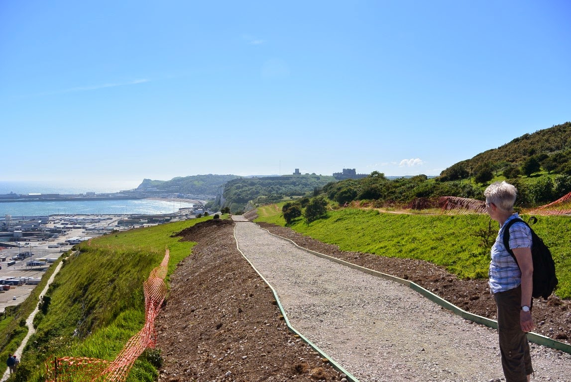 Efter indkvartering gik vi afsted for at komme op på "The White Cliffs of Dover". Herunder er vil halvvejs oppe ad stien med et vue ud over havnen.